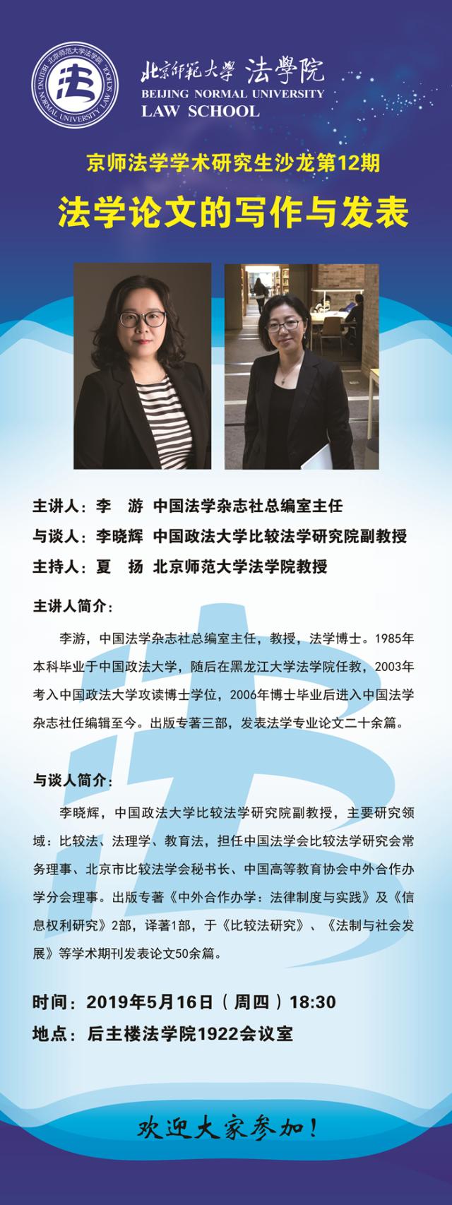 【05.16】京师法学学术研究生沙龙第12期/主讲人:李游
