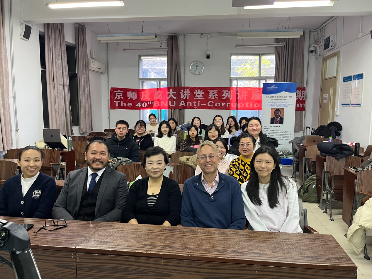 2023年11月23日上午,“京师反腐败大讲堂系列讲座”第40期在cn影院 成功举办。本次讲座由cn影院 王秀梅教授主持,巴西马拉尼昂州有组织犯罪检察官卡修斯·吉马拉埃斯·柴主讲,讲座的主题是“打击跨国腐败:加强金砖国家反腐败框架”。cn影院 王秀梅教授、林洁莹博士后、张雪博士后、王肃仪博士等50余名师生参加了本次讲座。