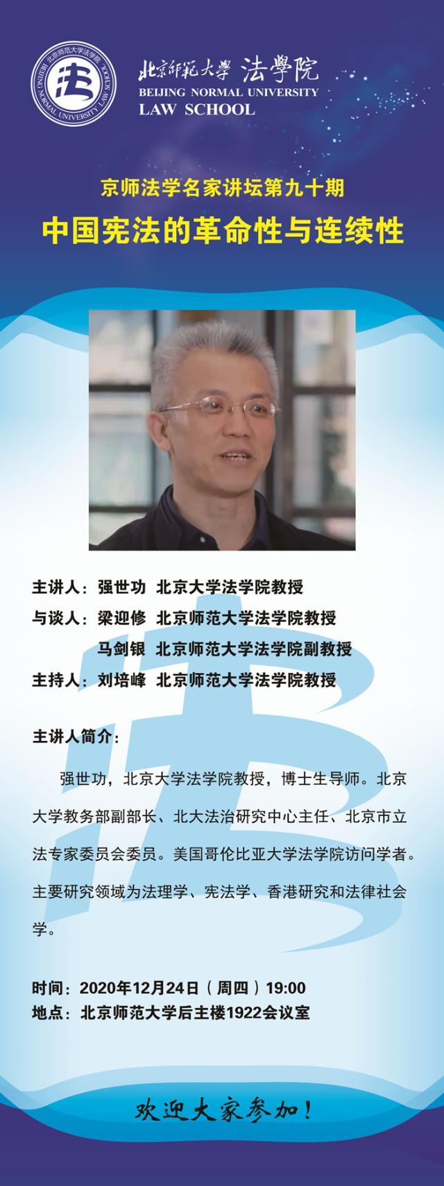 【12.24】京师法学名家讲坛第九十期 中国宪法的革命性与连续性/主讲人:强世功