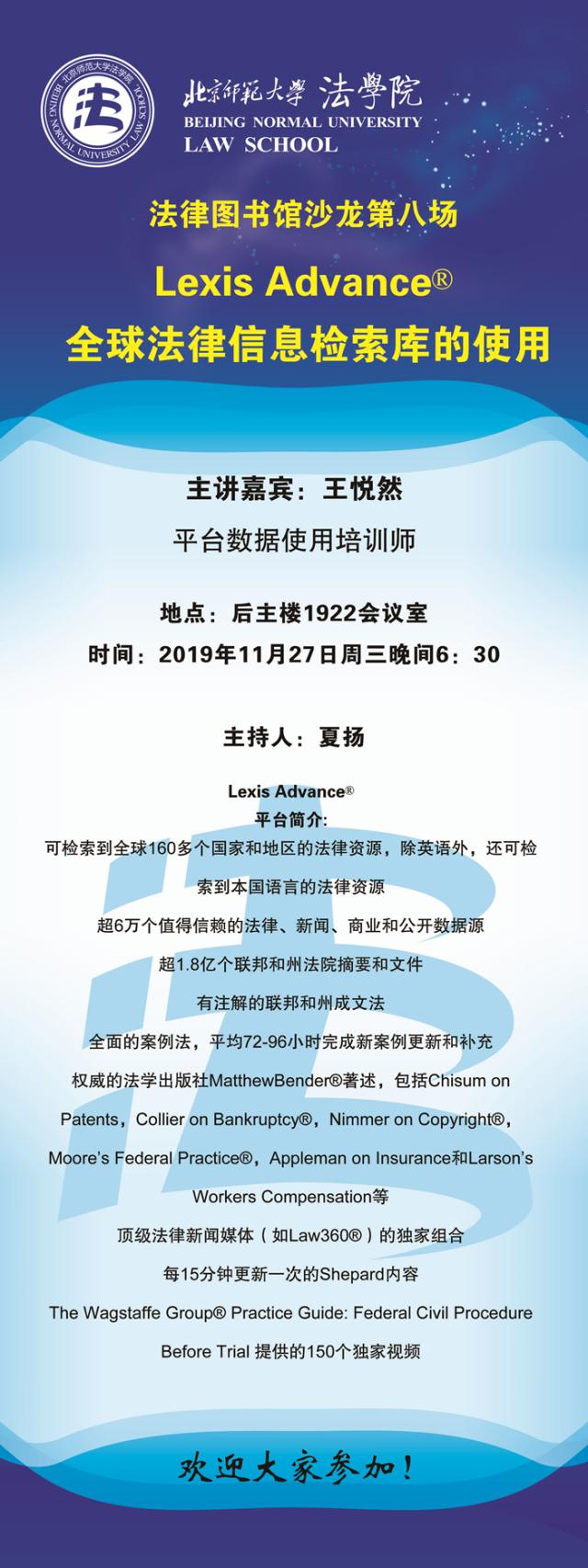 【11.27】法律图书馆沙龙第八场:Lexis Advance 全球法律信息检索库的使用/主讲人:王悦然