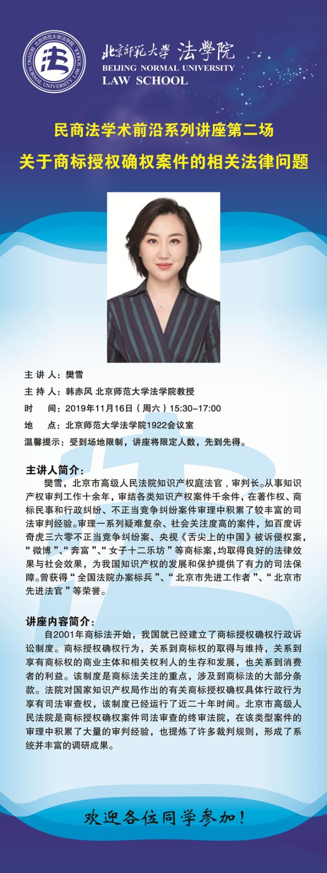【11.16】民商法学术前沿系列讲座第二场/主讲人:樊雪