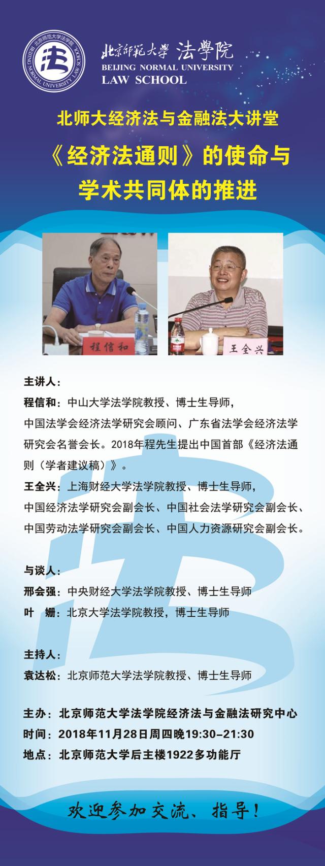 【11.28】北师大经济法与金融法大讲堂/主讲人:程信和