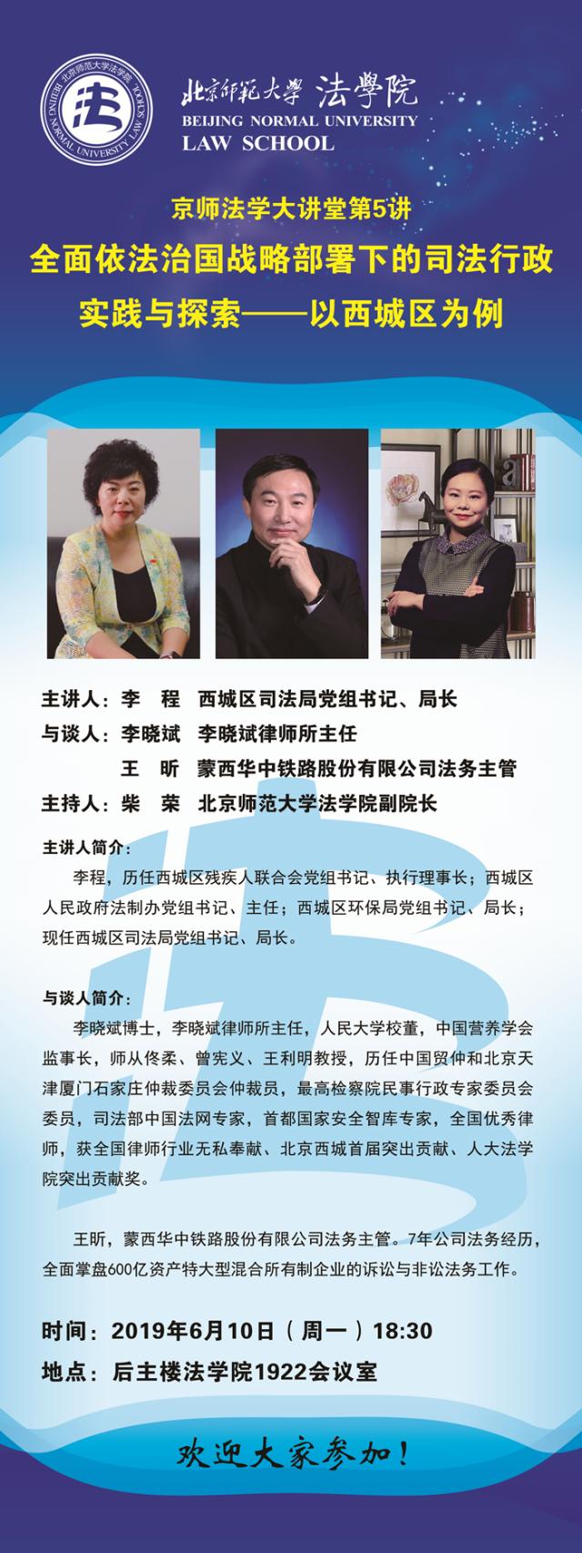 【06.10】京师法学大讲堂第5讲:全面依法治国战略部署下的司法行政实践与探索--以西城区为例/主讲人:李程