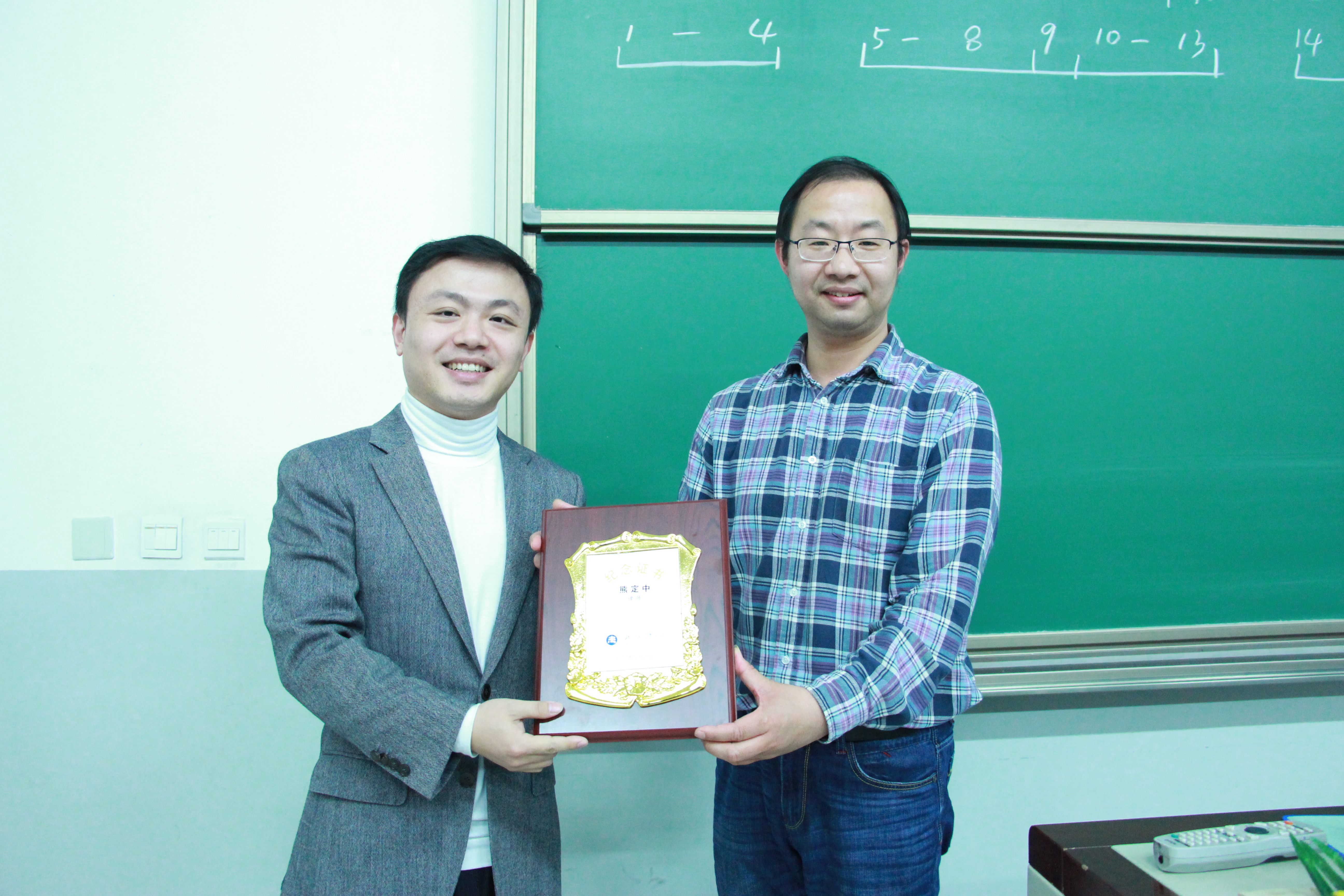 法硕中心副主任马剑银副教授向熊定中律师赠送京师法律实务大讲堂纪念奖牌,并合影留念。