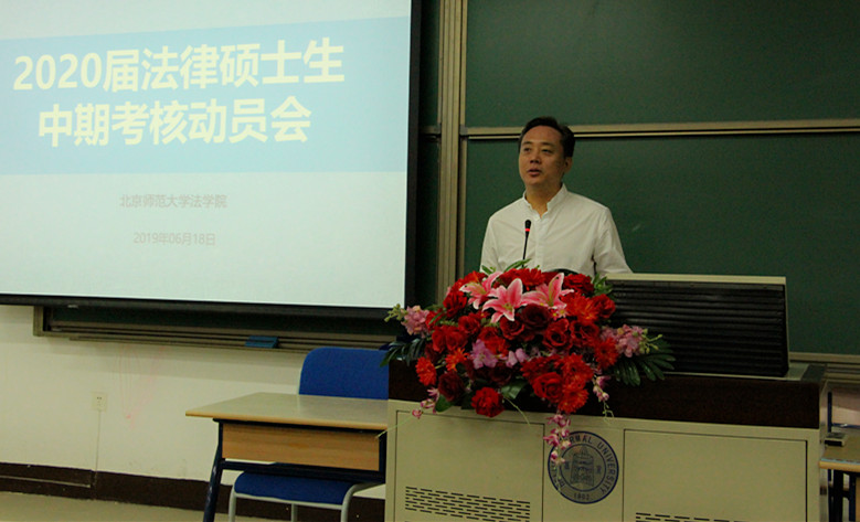 会议开始,李滨教授做中期考核动员讲话,他强调法律硕士中期考核的重要性,提醒学生们遵守学院学籍管理、关注培养方案中的学分要求以及论文开题写作的重要性。