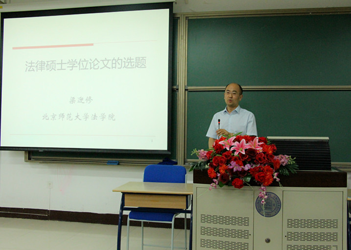 最后,梁迎修教授做“法律硕士学位论文的选题”的讲座,从法学论文的界定、法律硕士学位论文选题的要求、法律硕士学位论文选题的一般过程以及论文写作推荐阅读书目等几个方面指导同学们更好、更有针对性的进行毕业论文选题、写作。梁老师特别强调论文选题要“有意义、有创新、能驾驭”。
