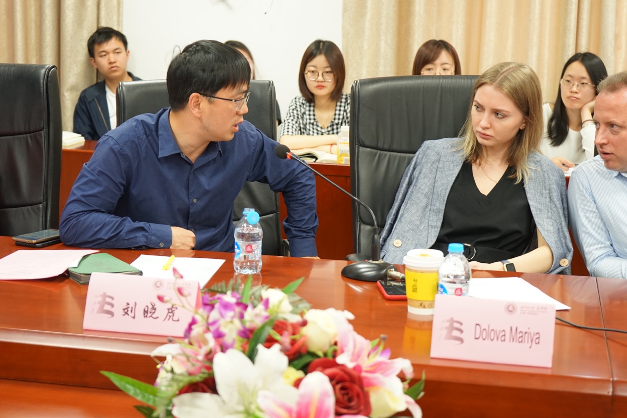 在讲座的交流环节,Dolova Mariya博士表示在俄罗斯法官腐败是较为严重的问题,并就该问题与刘晓虎研究员展开讨论。赵晨光副教授就官员资产公开制度中海外账户的疑难问题向Sevalnev Vyacheslav处长了解了俄罗斯的经验。参与讲座的其他师生也积极围绕俄罗斯的反腐败反洗钱法律以及反腐败国际合作问题进行了提问与讨论。