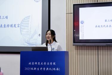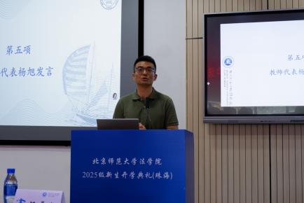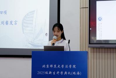 新生代表刘馨同学分享了备考阶段的奋斗历程与初入cn影院 的感悟。她坦言从五湖四海汇聚于此的学子们皆怀揣对公平正义的追求与法治建设的初心,并呼吁新生秉持“德育英才,法行天下”的院训,践行“京师法律人”使命与担当。面对适应新环境的挑战,她鼓励同窗保持平常心,不畏将来,在北师大cn影院 共同成长,为法治中国建设贡献青春力量。