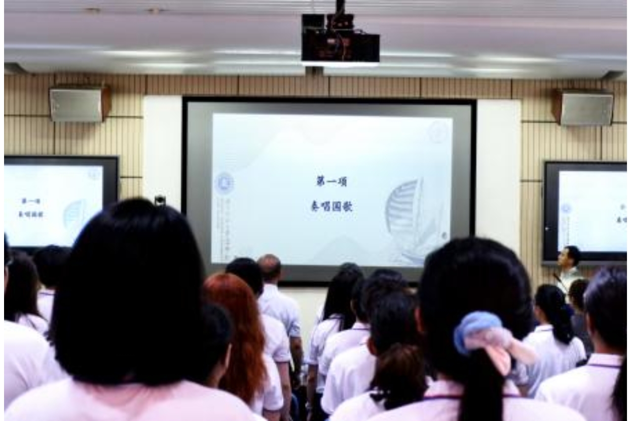 在庄严的国歌声中,开学典礼正式开始。