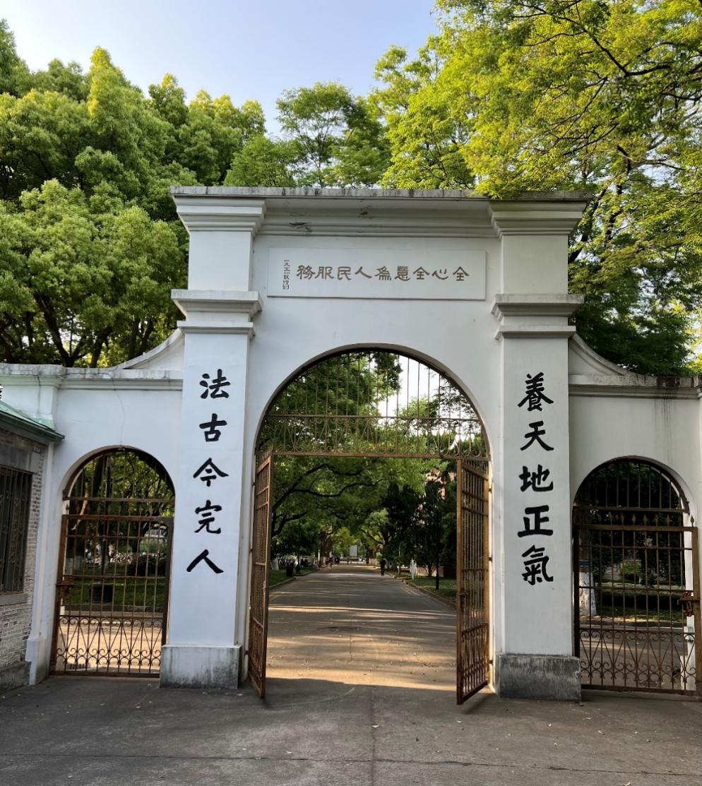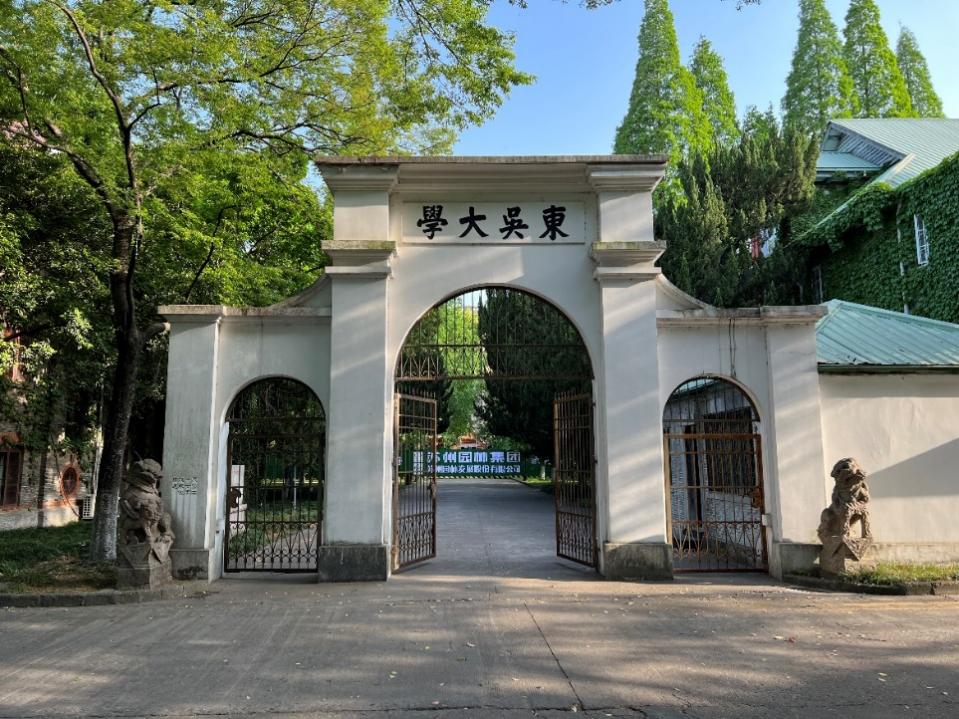 苏州大学王健cn影院 所在的苏州大学校本部(天赐庄校区),是原著名的私立高等学府东吴大学所在地,过去曾有“南东吴北朝阳”的说法,法律界人士对此耳熟能详,“南东吴”就是指东吴大学,崇尚海洋法系,即英美法学;而“北朝阳”是指位于北京的朝阳大学,崇尚大陆法系。在讲座开始前,吴宗宪教授在韩冰老师的陪同下游览了原东吴大学旧址及建筑,在东吴大学校门背后镌刻的校训“养天地正气,法古今完人”,是由当时首任华人校长杨永清提议确定的,原文出自1923年元月孙中山先生的墨宝。办公楼(钟楼)及前面的巨大草坪也令人印象深刻。