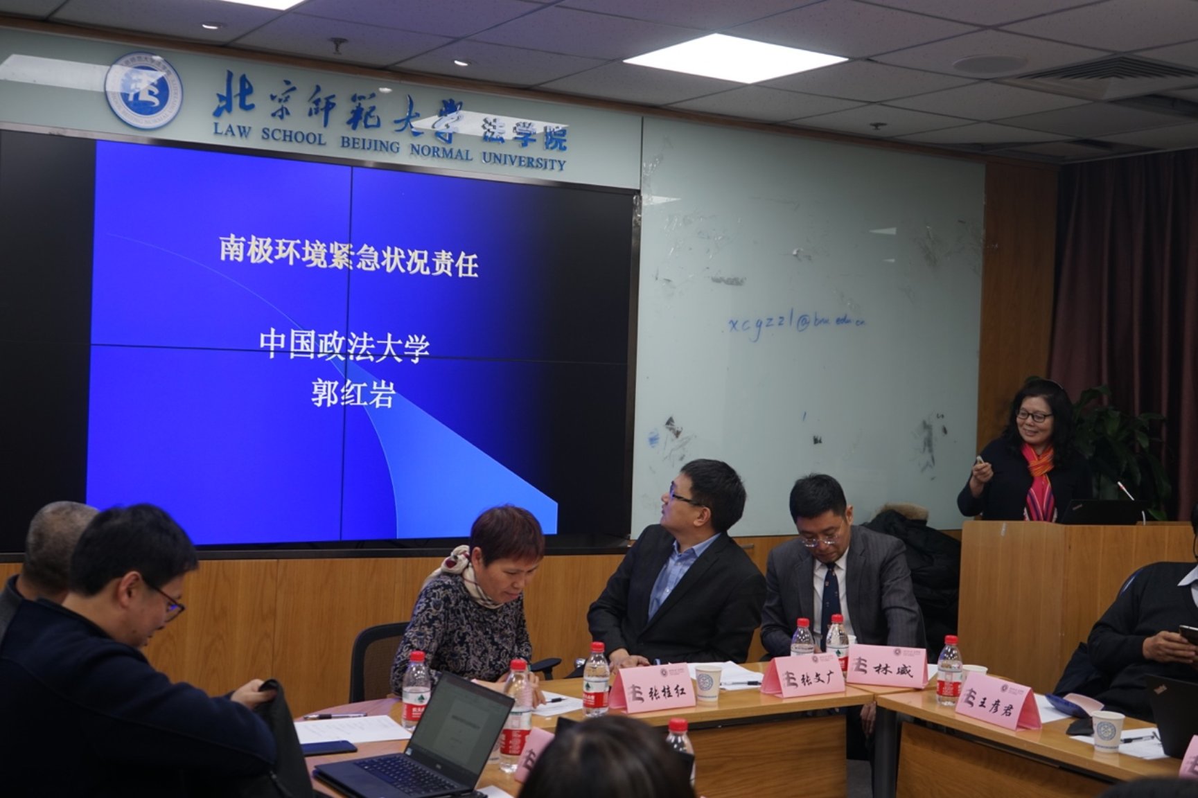 紧接着,郭红岩教授介绍了南极环境紧急状况责任,全面梳理了南极条约体系,并提出了责任主体的认定、反应行动的合理规制、国家的国际赔偿责任的免除与豁免等问题。商韬教授也就南极海洋保护区法律依据提出了自己的几点思考,介绍了南极海洋保护区实践现状、法律现状、法律依据辨析等内容。