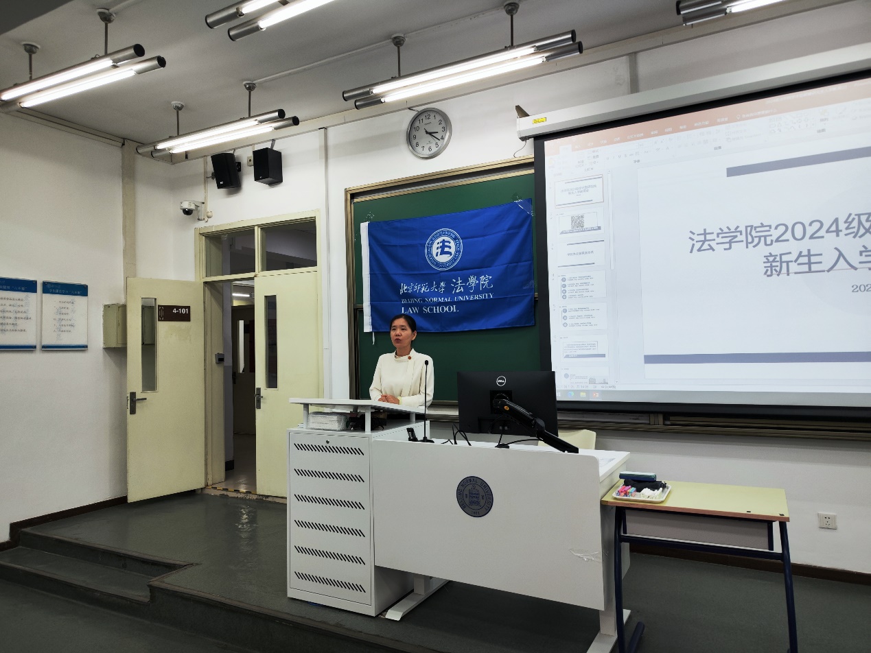 下午2点会议准时开始。贺丹代表cn影院 向全体2024级硕博新生表示热烈欢迎,并为同学们介绍了北师大法学学科的发展历程以及近年来学院在学科建设、师资团队、人才培养等方面的丰硕成果。她寄语全体新生要珍惜学院的丰富学术资源。