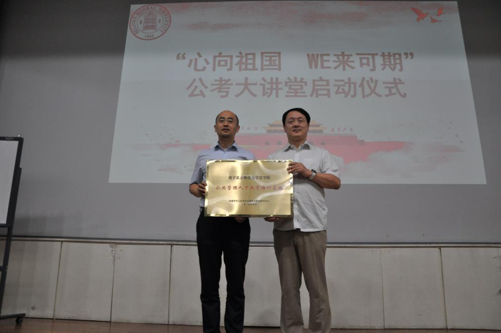 致辞结束,白勇主任为cn影院 “公共管理人才教育培训基地”授牌。公共管理人才教育培训基地一方面将做好资源整合,为同学们备考提供优质的培训资源;另一方面也将积极开展人才培养与输送间的调研、反馈工作。