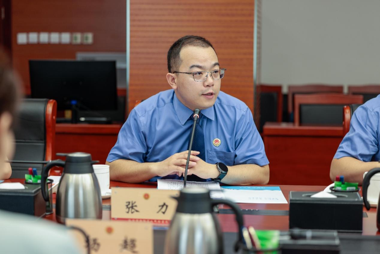(下图为朝阳检察院政治部宣教组组长、涉外检察办公室主任张力介绍"朝检·涉外博汇学堂"相关情况)