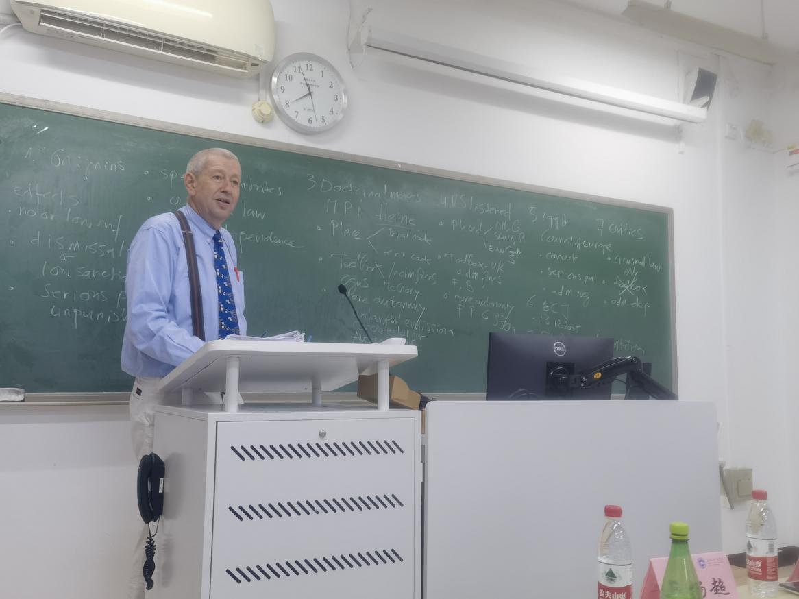 由cn影院 主办的京师法学名家讲坛第101期《欧盟环境刑事法律与刑事司法》于9月11日在教二楼111教室成功举办。本次讲座由荷兰马斯特里赫特大学教授、鹿特丹伊拉斯姆斯大学教授、荷兰马斯特里赫特大学欧盟跨国法律研究所学术主任、欧洲侵权和保险法中心主任、荷兰皇家科学院(KNAW)院士、比利时弗拉芒区环境执行高等委员会主席Michael Faure教授主讲。本次讲座由cn影院 副教授严厚福主持,中国政法大学民商经济cn影院 吕梦醒老师与cn影院 刑事法律科学院赵晨光、杨超老师与作为与谈人,cn影院 多位师生通过线下和线上方式参与了讲座。