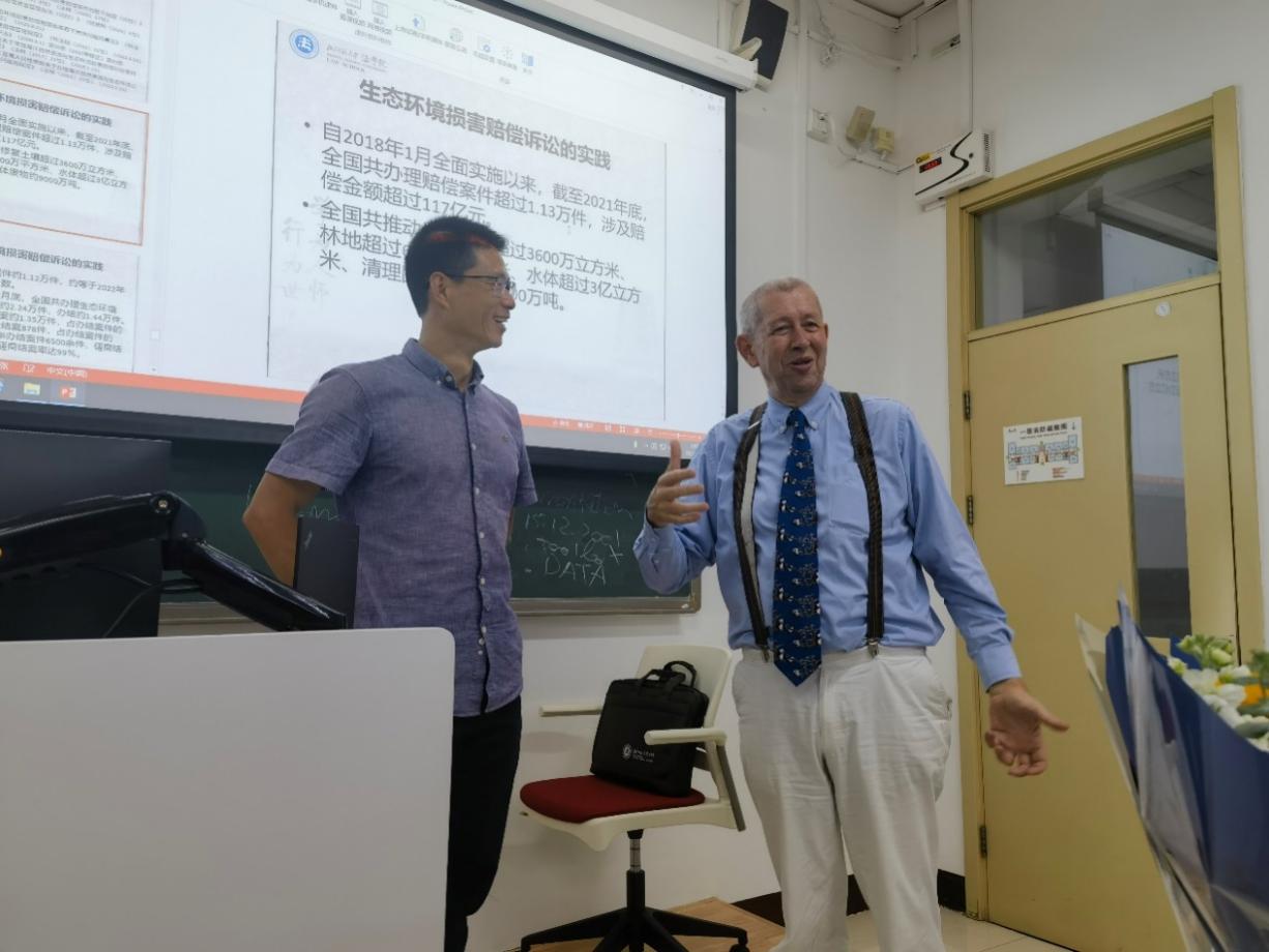 严厚福老师向Faure教授展示了2013年以来我国环境保护领域刑事执法、行政执法以及环境公益诉讼和生态环境损害赔偿诉讼的进展情况,指出中国环境执法“工具箱”中的工具种类日益丰富,执法力度不断提升。但与欧盟很多成员国类似,确实还存在着不少“执法赤字”,未来中国还需要继续向欧盟、美国等学习相应的经验和教训,进一步提升环境执法水平。