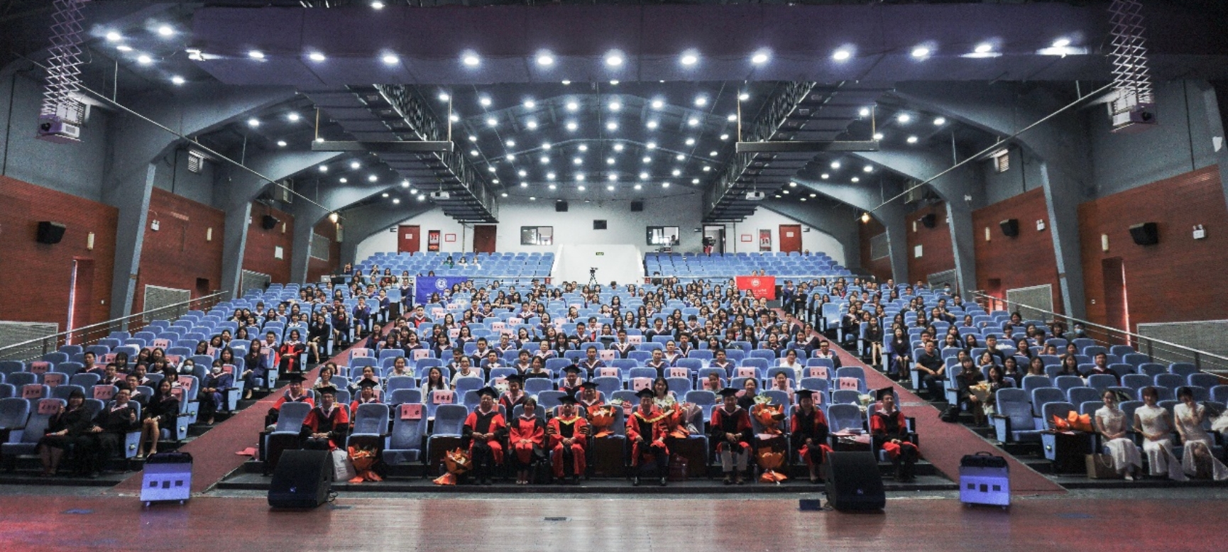 下午,学生活动中心群贤毕至。2021届全体毕业生,cn影院 的领导、老师们在礼堂前的宣传喷绘前合影后进入礼堂。礼堂内的大屏幕上滚动播放着学院为毕业生精心准备的视频。视频中,老师们的祝福,各位师弟师妹们的祝愿都是那么真切,赢得阵阵欢呼和掌声的同时也勾起了毕业生们对大学美好岁月的追忆。