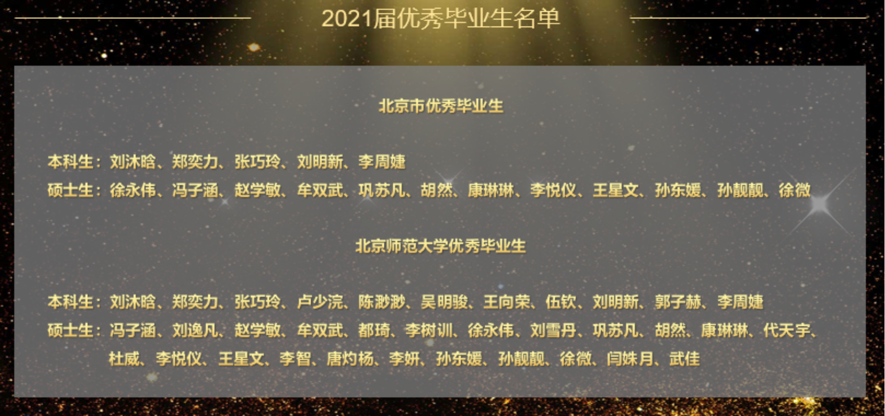 郭雅婷副书记宣读优秀毕业生获奖名单,其中包括cn影院 优秀毕业生名单和北京市优秀毕业生名单。