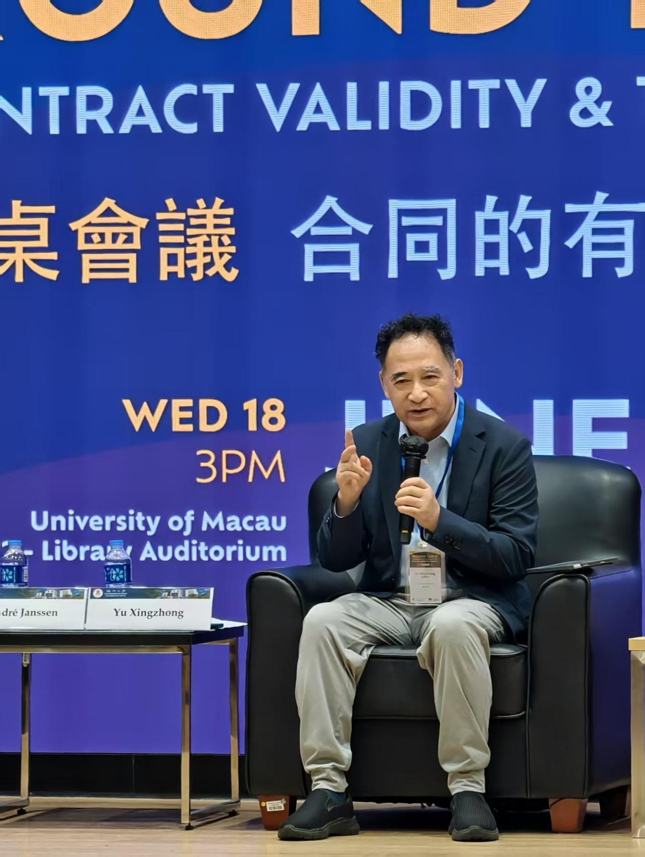 第一场讲座围绕违反强制性规定的合同的效力问题展开,由澳门大学cn影院 讲座教授、人文社科高等研究院院长於兴中主持。他首先对各位与会专家学者和在场同学表示热烈欢迎,并隆重介绍了讲座嘉宾:英国杜伦大学教授陈磊、荷兰拉德堡德大学教授André Janssen、德国法兰克福应用技术大学教授Olaf Meyer、澳门大学教授Isabel Mousinho de Figueiredo、cn影院 特聘教授米健、cn影院 珠海校区副教授孙宏友、cn影院 法治发展研究中心讲师牛子晗、郭远。