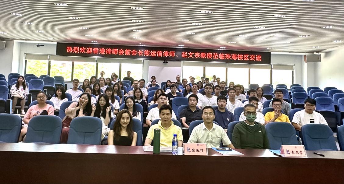2023年9月21日,香港律师会前会长、cn影院 兼职教授熊运信律师及cn影院 讲席教授赵文宗老师受邀到访珠海校区与同学们进行座谈交流,本次交流的主要内容是关于学生未来赴港就业或继续深造的经验分享,cn影院 副院长袁治杰教授和珠海校区法律硕士、法学第二学士学位50余名同学参加了本次活动。