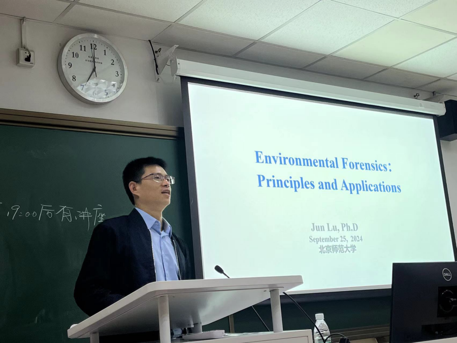 On the evening of September 25, 2024, the 66th session of BNU Legal Practice Lecture Series - " Environmental Forensics: Principles and Applications" was successfully held in Room 313 of the Second Teaching Building. The lecture was delivered by Dr. Lu Jun, a renowned Chinese-American specialist in environmental forensics, and moderated by Associate Professor Yan Houfu of the Law School of Beijing Normal University. The event drew an engaged audience of over 40 faculty members and students from the Law School, including Professor Yuan Dasong.
