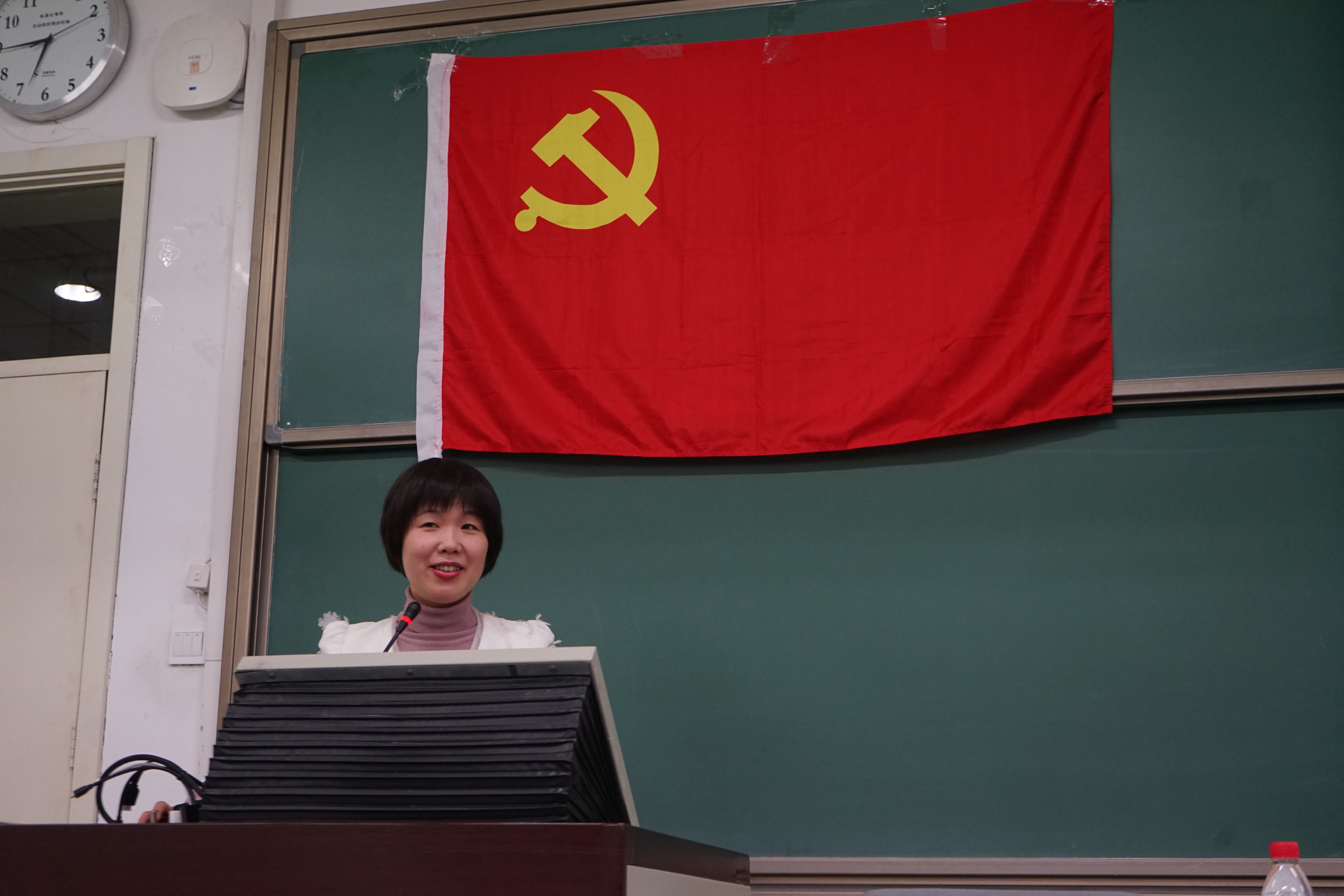 在主题讲座中,邹丽春老师主要讲解了“为什么要入党”和“如何才能规范入党”两个问题。首先,邹丽春老师讲述了多位优秀中国共产党人“不忘初心”的故事,并勉励新时代的年轻人要有信仰,有追求,不忘初心、牢记使命,肩负起时代的重任。随后,邹春丽老师指出了当前加强党员工作规范的重要性,并提醒在座的党员和入党积极分子要有积极性和主动性,规范入党,争做合格党员。
