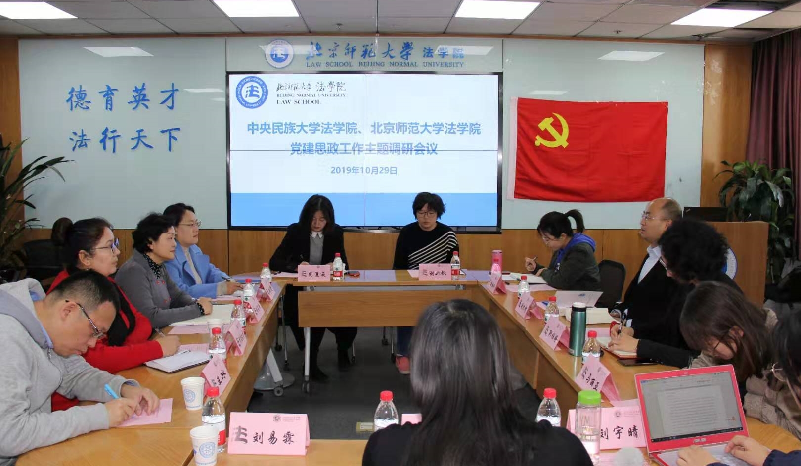 2019年10月29日上午,cn影院 与中央民族大学cn影院 在后主楼1922会议室召开了党建思政工作主题调研会议。参加调研会的有中央民族大学cn影院 党委书记杨莉萍、正处级组织员阿孜古力、党委副书记丛静、党团学办主任王冰、党团学办辅导员周夏薇、党务秘书助理刘易霖,cn影院 党委书记梁迎修、党委副书记郭雅婷、团委书记马丽亚、党务秘书徐淑琳、专职辅导员刘业帆、学工办教师祁书峰、学生事务助理刘宇晴。