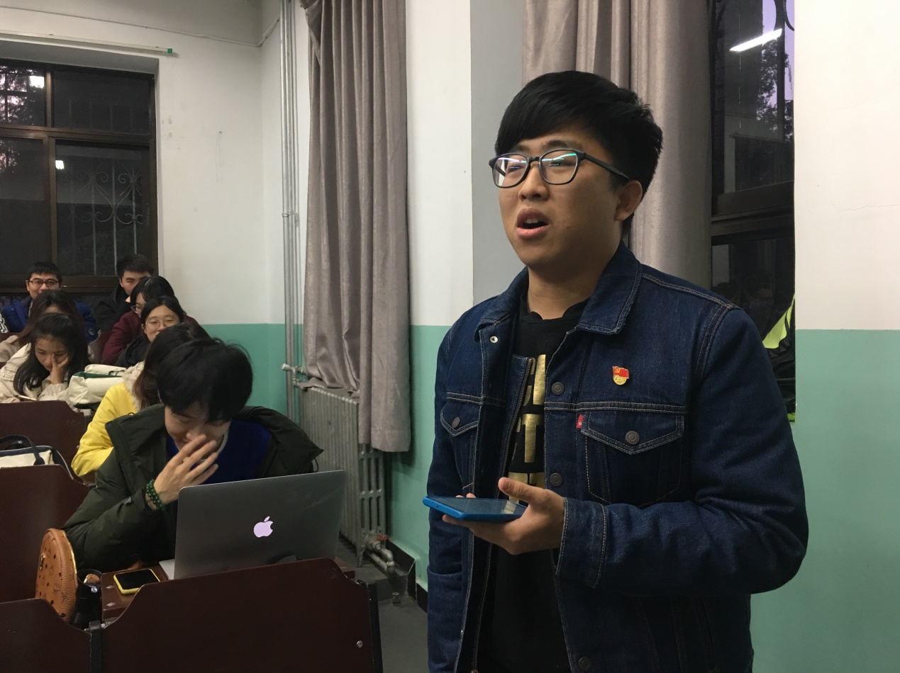 会议最后一项是刘业帆老师进行会议总结。刘老师总结到:不论是党员还是积极分子,都要以五四运动所宣扬的精神作为指引。党员同学们不仅要在组织上入党,更要在思想上入党,加强自身的党性意识,努力提高政治思想水平。积极分子同学也要以党员的标准要求自己,加强理论学习,积极向党组织靠拢。