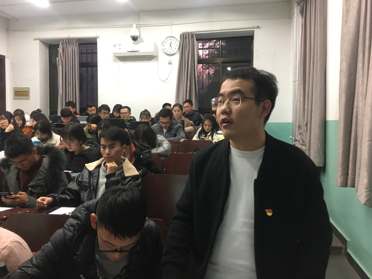 为进一步落实“不忘初心,牢记使命”主题教育,增强党支部成员的政治性、时代性、原则性,2019年12月9日下午4点30分,2019级法律硕士第二党支部于教十111举行“不忘初心、牢记使命”组织生活会暨支部书记讲党课活动。cn影院 专职辅导员刘业帆老师参与了本次会议。参加本次活动党员28人、积极分子33人,请假3人。