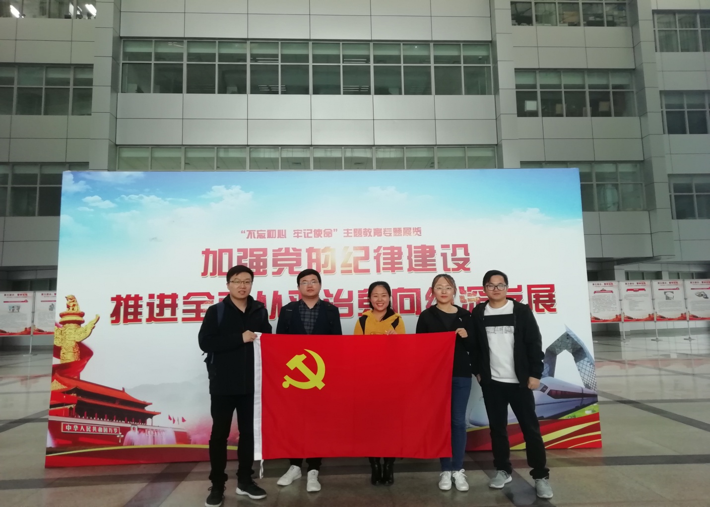 2019年11月2日上午,cn影院 博士第一党支部在学校主楼四季厅共同学习由中共cn影院 委员会和纪律检查委员会联合主办的关于“不忘初心,牢记使命”主题教育专题展览之“加强党的纪律建设,推进全面从严治党向纵深发展”。支部成员郭如愿、李树训、杜伟伟、李浩,预备党员王筱参加本次学习活动。