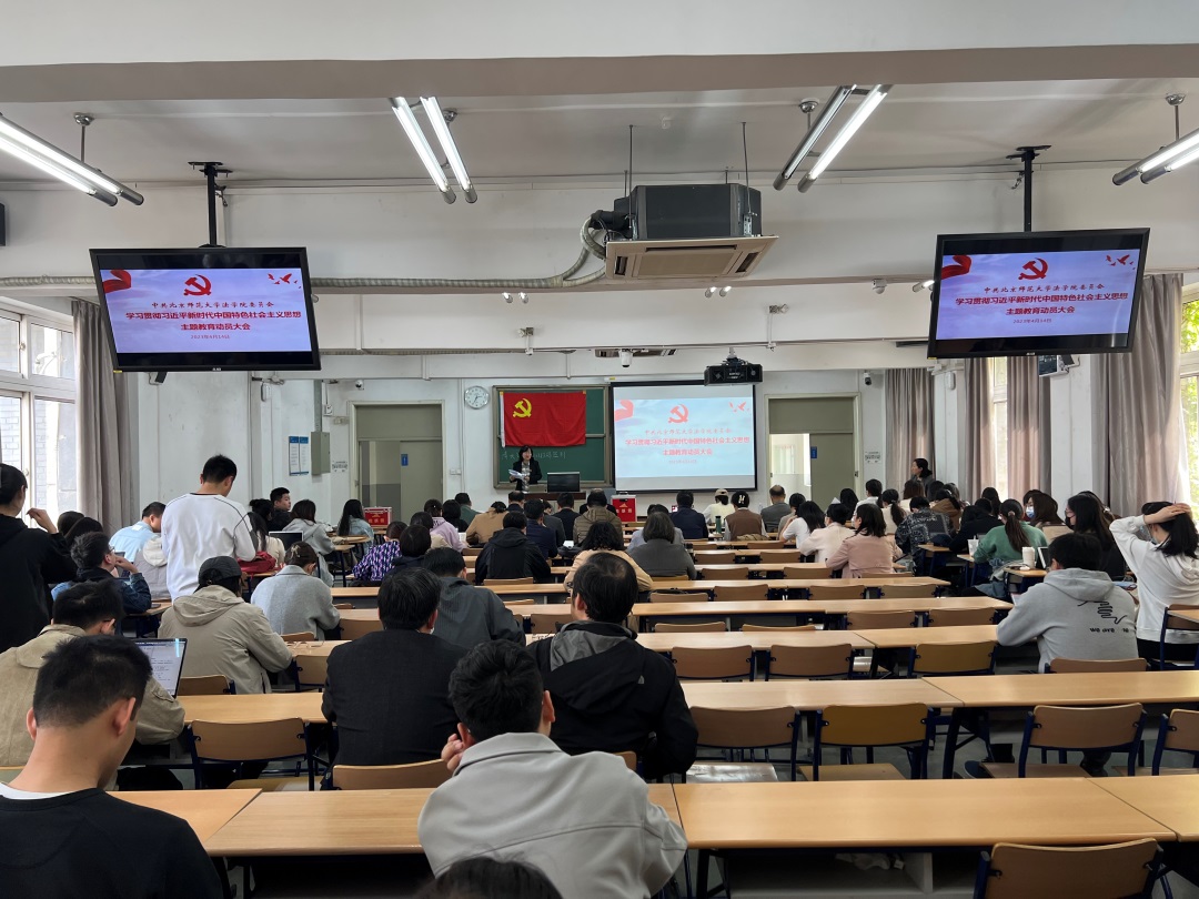 4月14日下午,cn影院 召开学习贯彻习近平新时代中国特色社会主义思想主题教育动员大会,传达学校主题教育动员大会会议精神,部署学院相关工作。学院党政班子成员、党支部书记、师生党员代表百余人参加启动会,党委书记柴荣做主题发言,会议由党委副书记蔡纹主持。