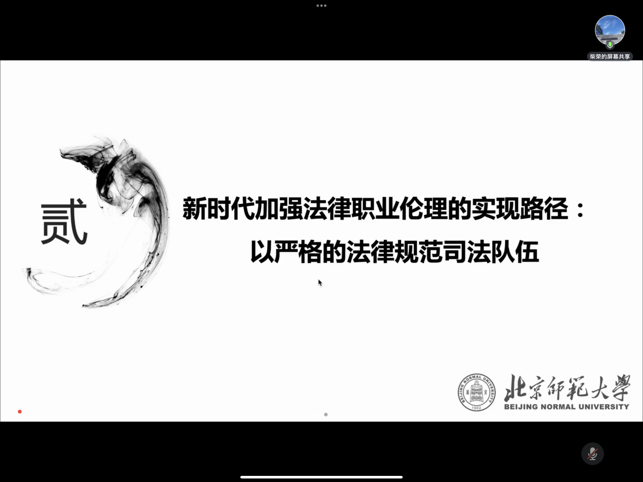 为了贯彻中共中央和国务院对新时代法学教育和法学理论研究的要求,中共cn影院 委员会于2023年12月13日下午成功举办了二级党校系列专题讲座。由cn影院 党委书记柴荣教授主讲的“习近平法治思想与法律职业伦理——以传统法文化为视角”专题讲座在线上精彩呈现,cn影院 百余师生积极参与。