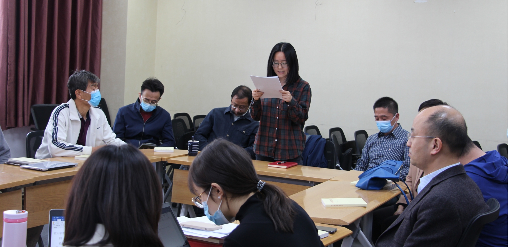 2021年4月30日下午2点,cn影院 教工第一党支部在后主楼1922会议室召开党员发展大会。唐璨老师主持会议。组织委员郭殊老师清点了到会人数,大会应到党员22人,实到19人,会议有效。