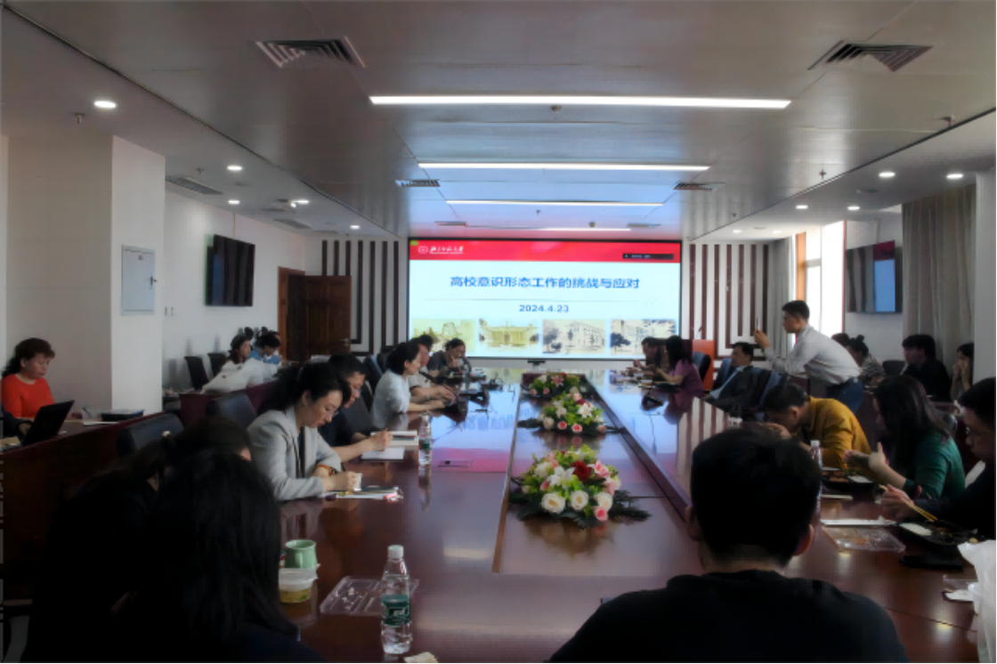 胡老师结合具体案例,从意识形态工作的极端重要性、学校意识形态工作面临的风险点以及我校意识形态工作开展情况和具体做法三个方面对意识形态工作进行了具体深入的介绍。