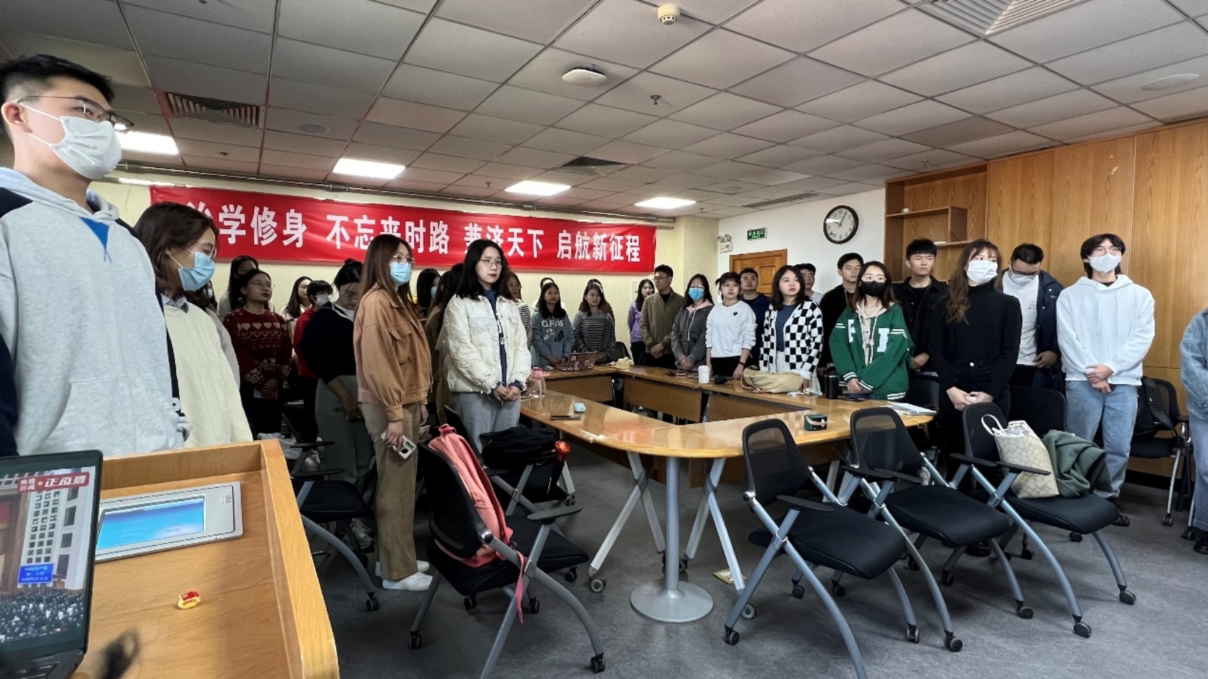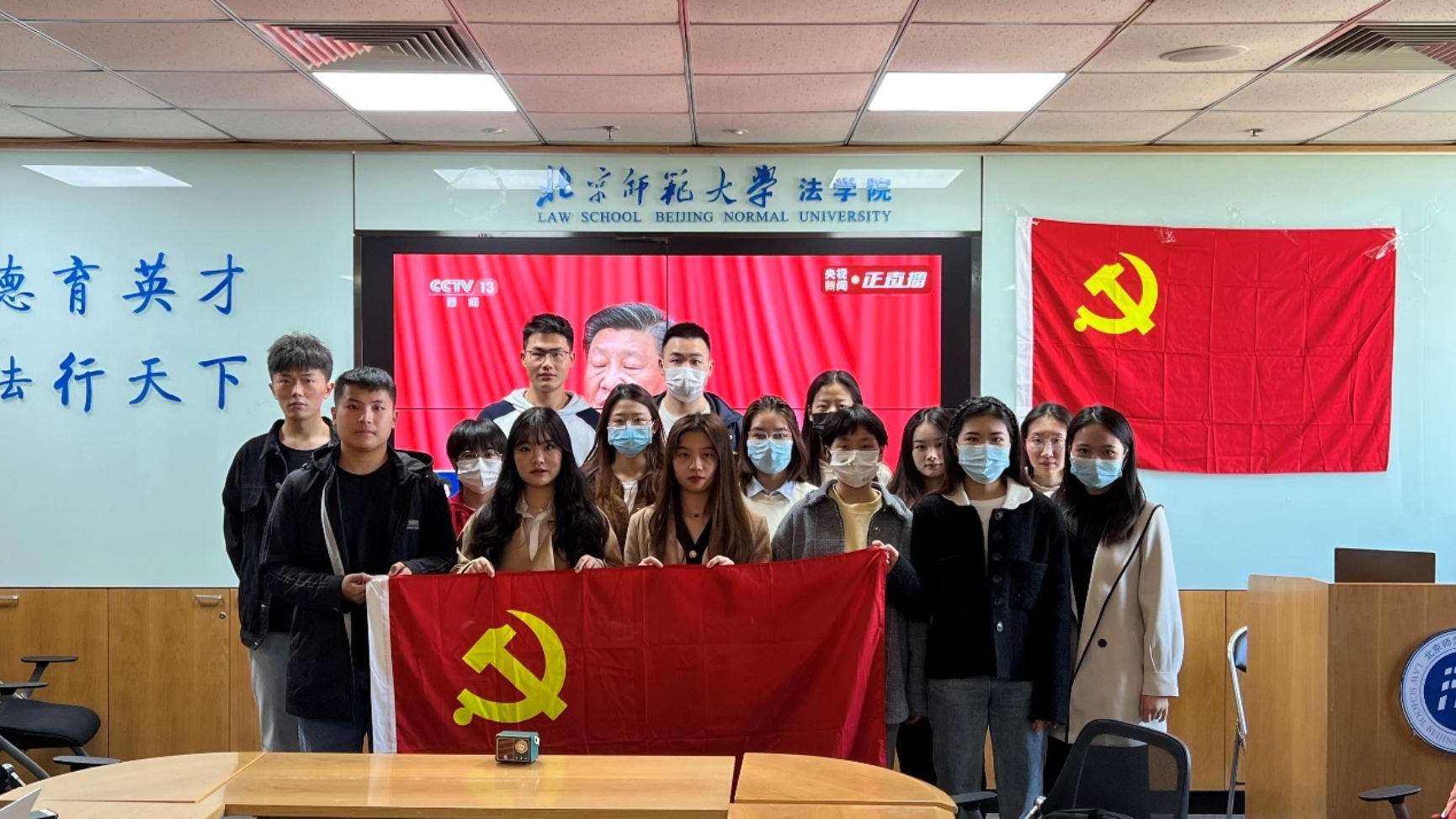 10月16日上午,举世瞩目的中国共产党第二十次全国代表大会在人民大会堂隆重开幕,习近平总书记代表十九届中央委员会向大会作报告。cn影院 2022级法律硕士第二党支部、2022级法律硕士第三党支部的全体党员在后主楼1922教室共聚一堂,共同聆听这次重要的会议报告。会场内鲜红的党旗分外醒目,气氛隆重而热烈。