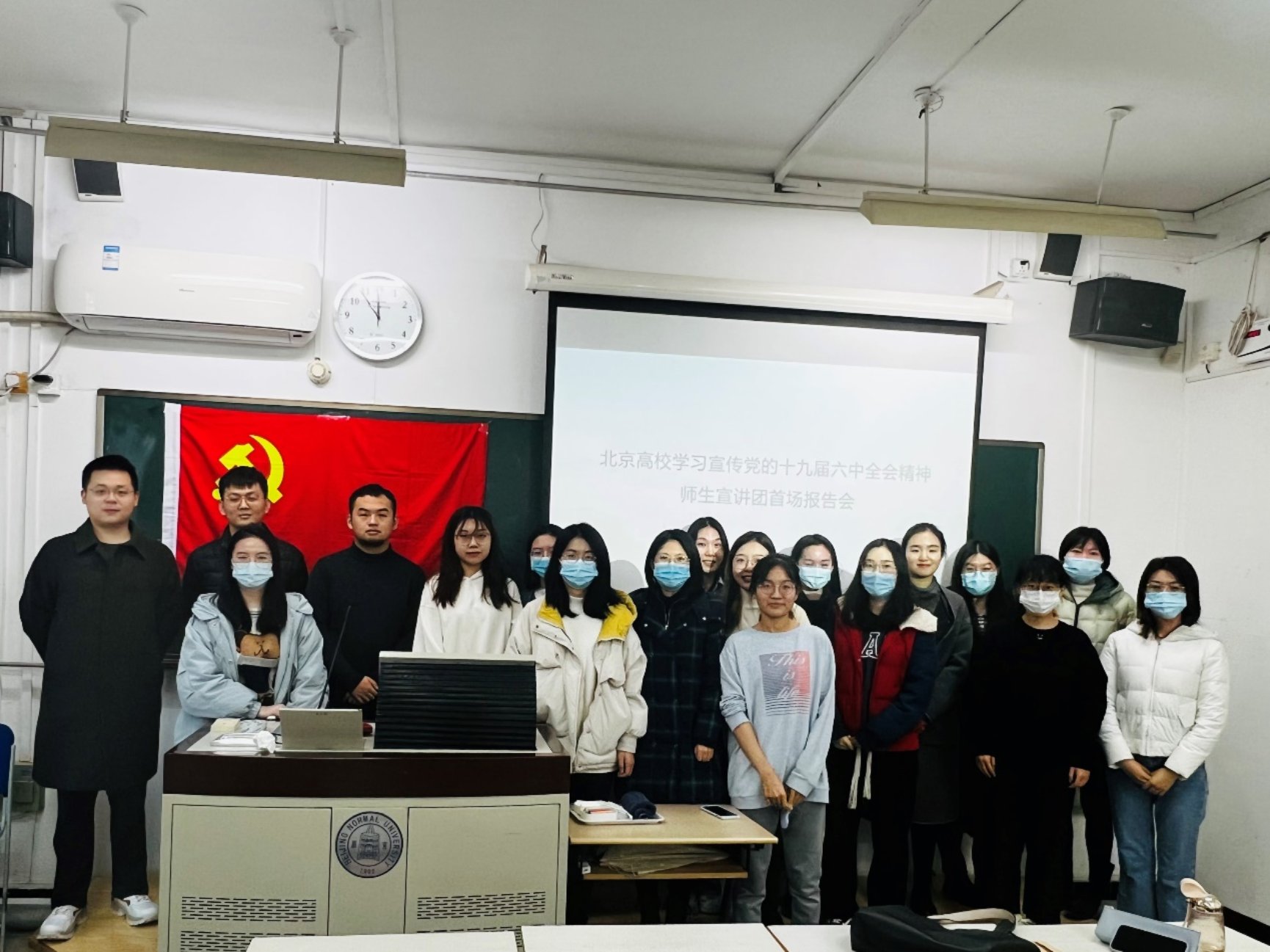 学习贯彻落实好党的十九届六中全会精神是当前和今后一个时期党史学习教育的首要任务和主要任务,是最重要的政治任务。为牢牢把握、学好悟透全会精神,根据北京市委教工委工作安排,cn影院 组织学生党支部积极参与北京高校学习宣传党的十九届六中全会精神师生宣讲团首场报告会,坚持以习近平新时代中国特色社会主义思想为指导,进一步增强“四个意识”、坚持“四个自信”、做好“两个维护”,坚持把思想和行动统一到全会精神上。
