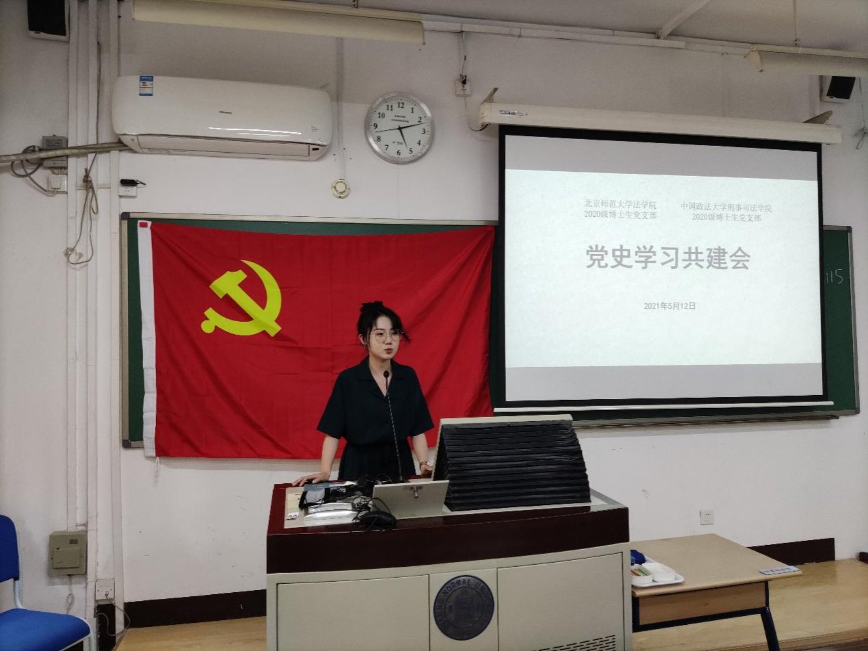 接着,中国政法大学刑事司cn影院 2020级博士班党支部书记李涵笑同志致辞,李书记代表本支部对北师大同学们的热情接待表示感谢,并希望两支部可以从本次活动开始共建共荣,团结协作举办更多更好的党建活动。