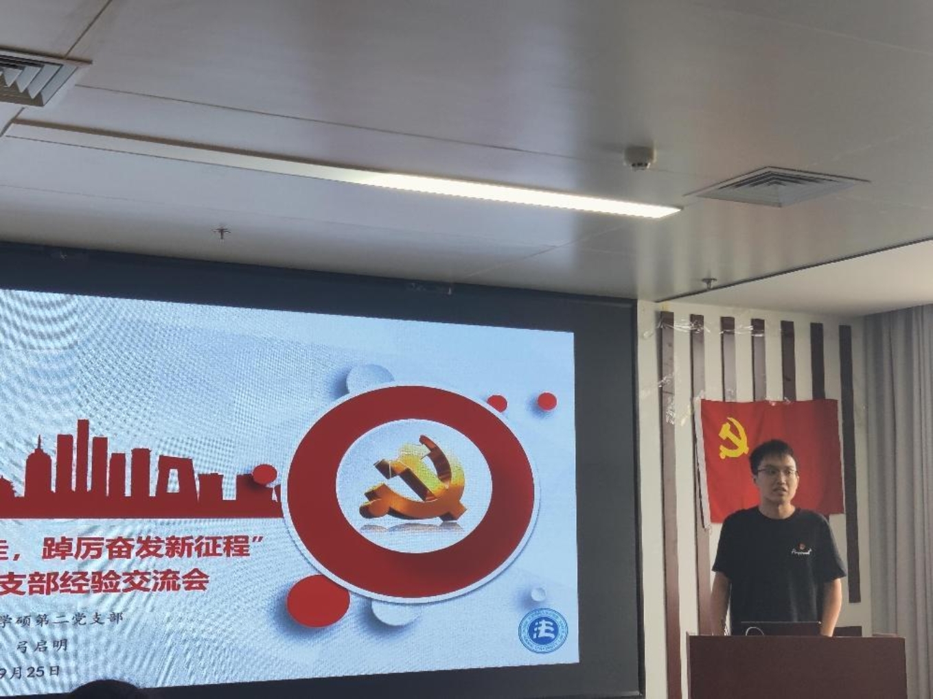接着,2022级学硕第二党支部书记弓启明分享了党支部工作经验。弓启明结合支部工作实际,从日常党建工作进行展开,具体介绍了结合本支部实际的工作方法和方式、党建活动组织与党建基金的申请、党支部宣传工作的开展等方面的内容。