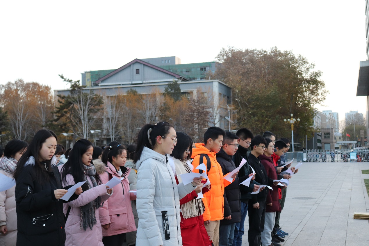 2018年12月4日清晨,由cn影院 2016级本科生党支部与cn影院 学生、cn影院 2015级本科生党支部、cn影院 分团委共同举办的宪法宣誓仪式在主楼前顺利进行。今年的12月4日是第五个国家宪法日。举办此次宪法宣誓活动,旨在迎接我国首个“宪法宣传周”,维护宪法权威,弘扬法治精神。