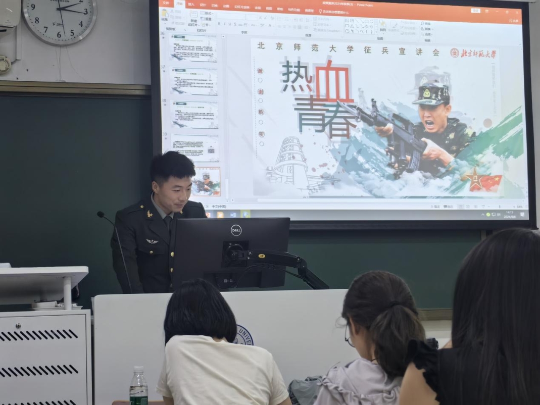 5月28日,cn影院 在教二楼312教室举办本科生征兵宣讲会,本次会议邀请到cn影院 文学院退伍大学生刘泽旭同学为同学们进行宣讲,cn影院 共有八十余名本科生代表参加本次宣讲会。会上,刘泽旭宣讲了国防事业的重要性,为同学们进行了相关政策解读。