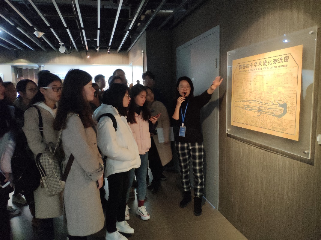 在讲解员的带领下,同学们从师大现今的沙盘图看起,了解各个校区规模庞大的建筑群。接下来,同学们沿着时间轴,从清代,从京师大学堂开始,揭开师大的历史面纱,深入了解师大在漫长而曲折的历史中,不畏环境艰苦地成长壮大。
