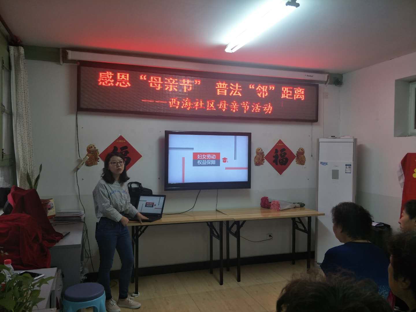 李子玉同学,依据《中华人民共和国妇女权益保障法》,讲解妇女在政治、 财产、人身、婚姻家庭等方面的权益。她又参照《中华人民共和国劳动法》,结合具体案例讲解了合同期限,劳动保护和条件,劳动报酬等方面的注意事项。让法制观念深入人心, 为群众提供了便捷的法律服务。