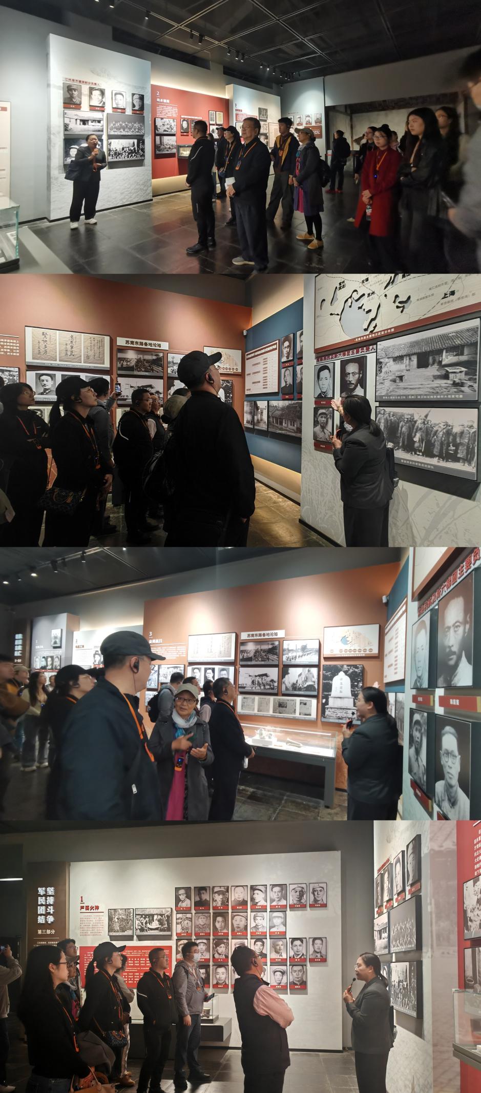 步入景区,首先映入眼帘的是“沙家浜”题词碑,碑上的题字苍劲有力,静静伫立在秋日阳光中,见证着那段可歌可泣的抗战岁月。师生党员们在碑前驻足凝视,仿佛透过碑石触摸到历史的脉搏,感受革命前辈的坚定信仰与不屈意志。沿着蜿蜒的林间小道,大家来到沙家浜革命历史纪念馆。展馆以时间为线索,分为“抗战烽火”“水乡根据地建设”“军民鱼水情”等多个篇章,通过大量的历史图片、实物文献和复原场景,再现了当年新四军与沙家浜人民并肩抗敌的壮阔画卷。