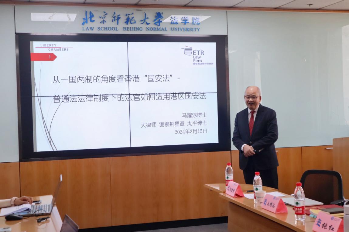 2024年3月15日下午,京师法学名家讲坛第一百零四期“从一国两制角度看香港‘国安法’”在cn影院 北京校区后主楼1922会议室顺利举办。本次讲座由马耀添大律师主讲,cn影院 张红教授主持。