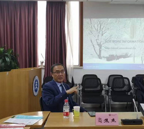 随后,Michel Morin教授向同学们介绍了蒙特利尔大学cn影院 的建院时间、院系宗旨、地理位置等情况,重点介绍了国际商法硕士项目,就生源情况、课程与学分设置、申请条件和程序、奖学金等情况进行了详细而具体的说明。
