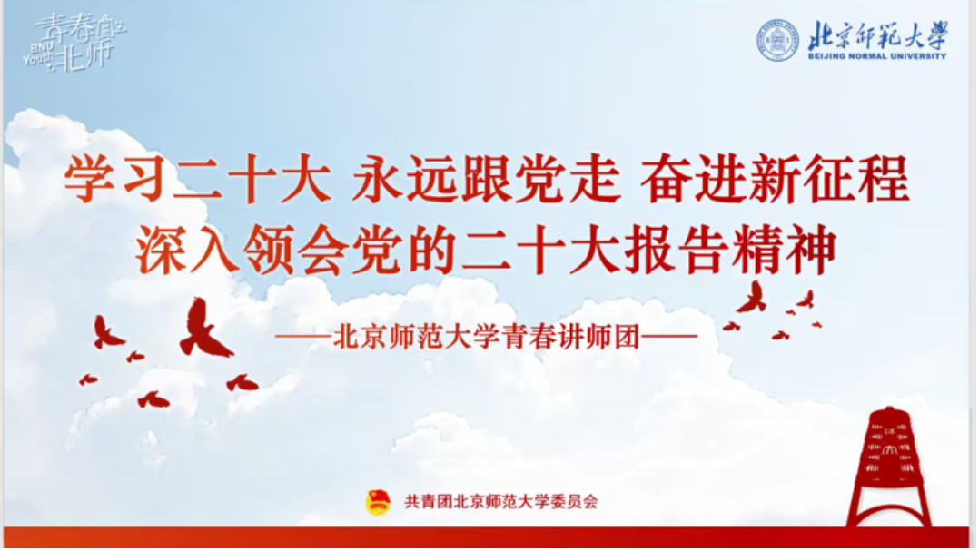 中国共产党第二十次全国代表大会于2022年10月16日在人民大会堂隆重开幕,10月22日胜利闭幕。为了深入贯彻学习党的二十大精神,cn影院 团委暨cn影院 初级团校于2022年11月9日晚邀请cn影院 青春讲师团郭冬晗与滕文强同学进行“学习二十大 永远跟党走 奋进新征程——深入学习领会党的二十大报告精神”线上宣讲活动。