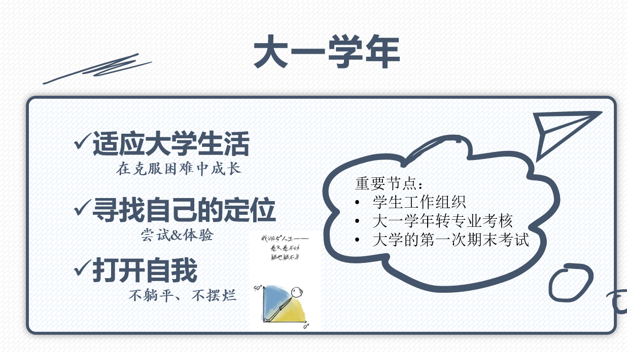 望今朝师兄主要就本科学习的经验方法进行分享。望今朝师兄介绍了大学四年的重要节点与每一学年的主要任务,分享了自己的专业课体系化学习方法,并向大一同学们提出了三个方面的建议:适应大学生活、寻找自身定位、打开自我拒绝躺平。最后,师兄告诉同学们要“珍惜当下,主动把握机会”,将北师大cn影院 作为平台,为自己自信谦逊地争取光明的未来。