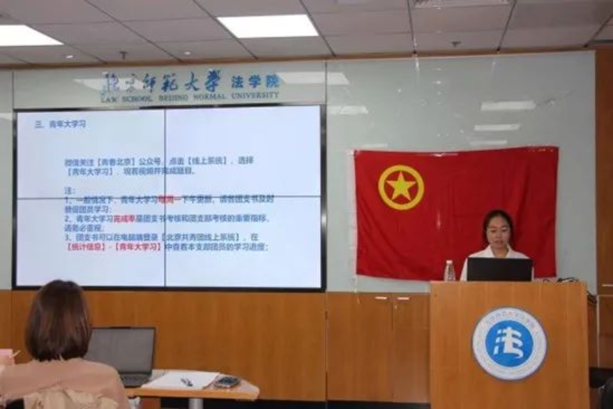 在新任团支书培训部分,组织部干事史欣然为新任团支书具体讲解北京共青团线上系统、团组织活动录入以及入团流程等团务工作。社团实践部委员王皓月为新任团支书讲解了志愿北京的注册流程。