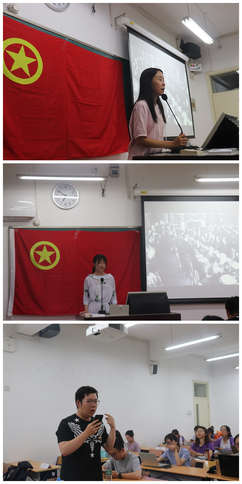 为了响应习近平总书记在北京大学师生座谈会讲话中所提出的“培养德智体美全面发展的社会主义建设者和接班人”、“抓好马克思主义理论教育,深化学生对马克思主义历史必然性和科学真理性理论意义和现实意义的认识”、“要了解中华民族历史,秉承中华文化基因,有民族自豪感和文化自信心”的要求,同时为了继承师大学子忧国忧民,热爱祖国,勇于探索,敢于创新,积极奋战在革命第一线的五四精神,2018年5月27日晚,cn影院 2017级卓越实验班团支部与2017级瀚德实验班团支部共同开展了“不忘初心,紧跟党走”五四青年节主题团日活动。
