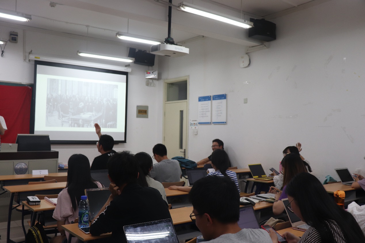 此次主题团日活动分为两个部分,第一部分以模拟会议的形式展开,同学们分别担任中、日、美、英、法等国家的代表模拟1919年巴黎和会的召开,紧扣“不忘初心”这一主题,让同学们感受在当时国际环境下,综合国力弱小的中国在国际世界的话语权之弱,维护国家主权及利益之艰。